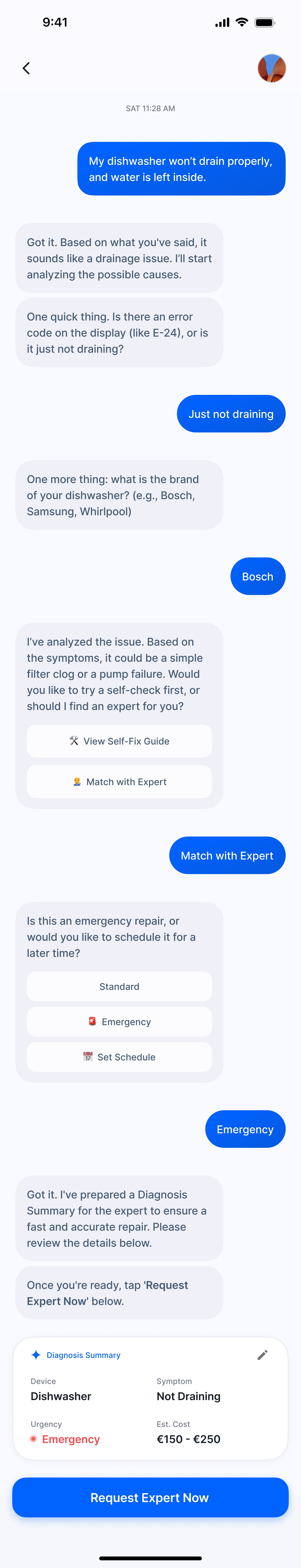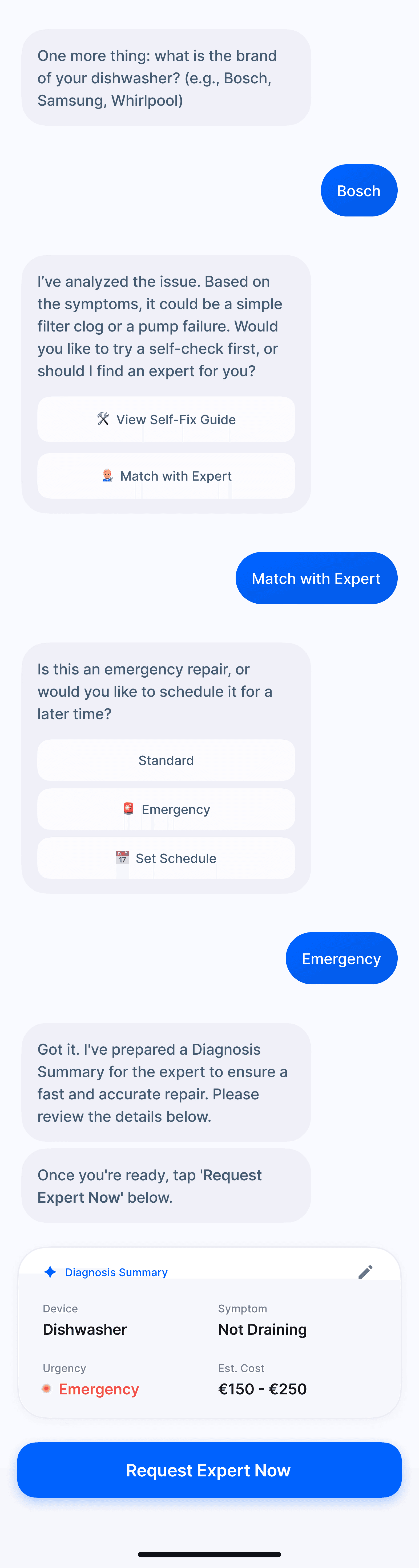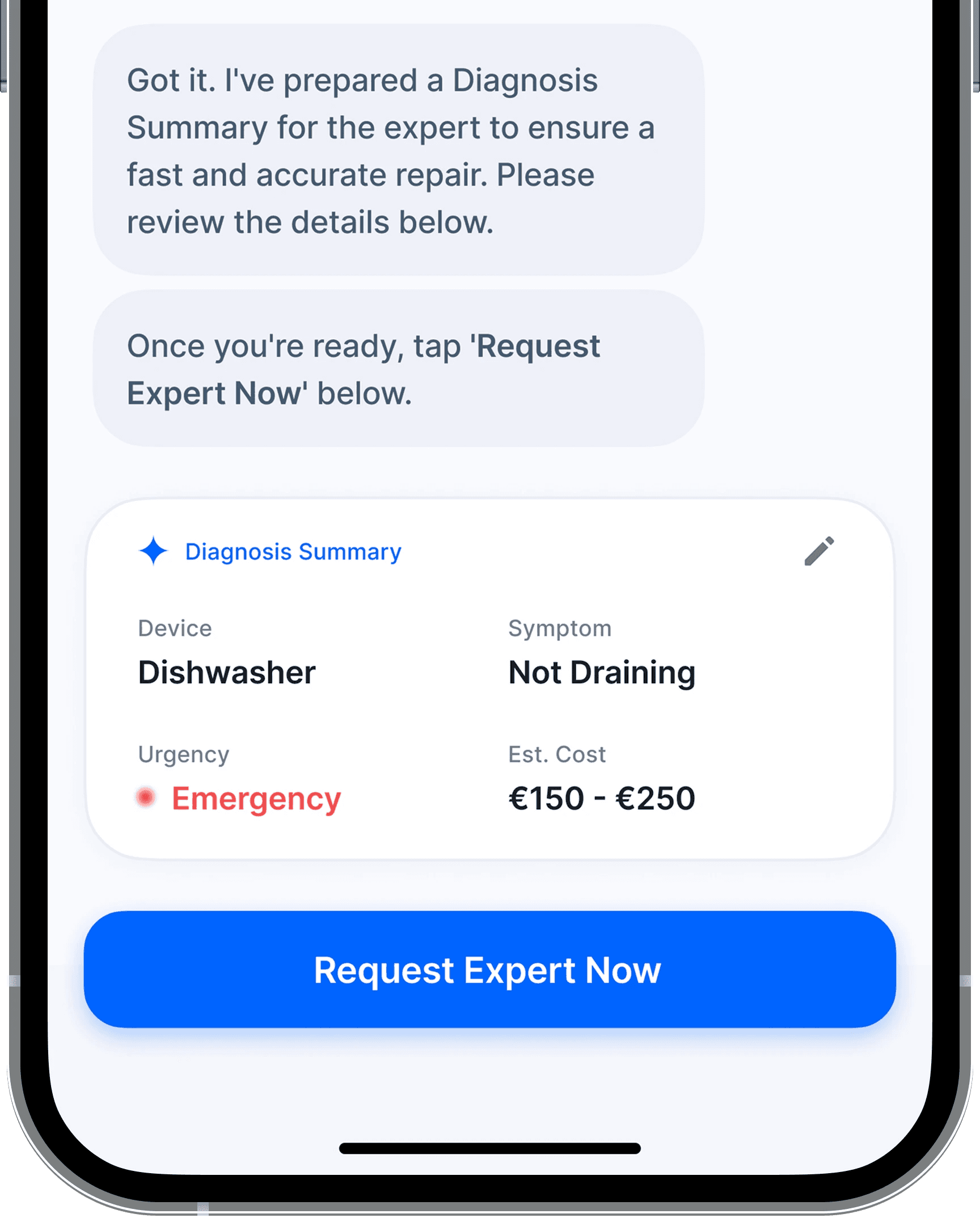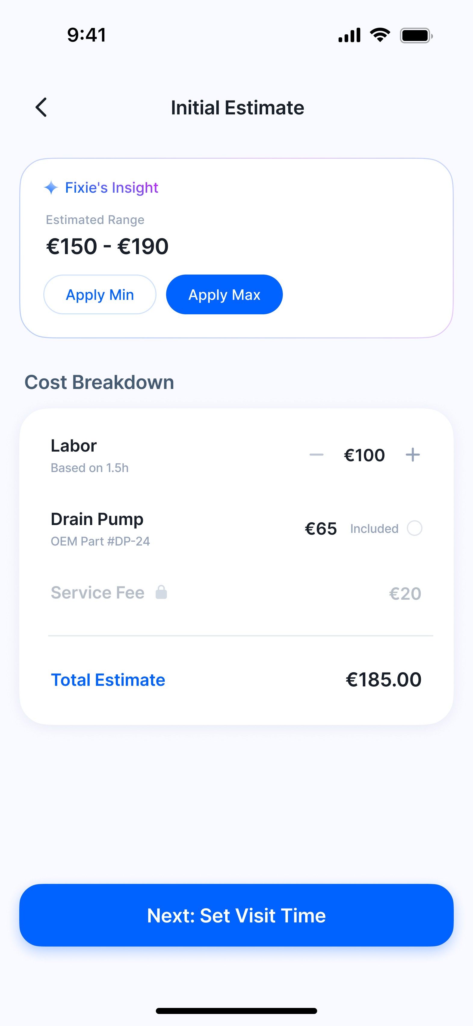 Interview findings showed that technicians could provide a rough estimate after identifying the issue. This created an opportunity to align expectations early in the process.
