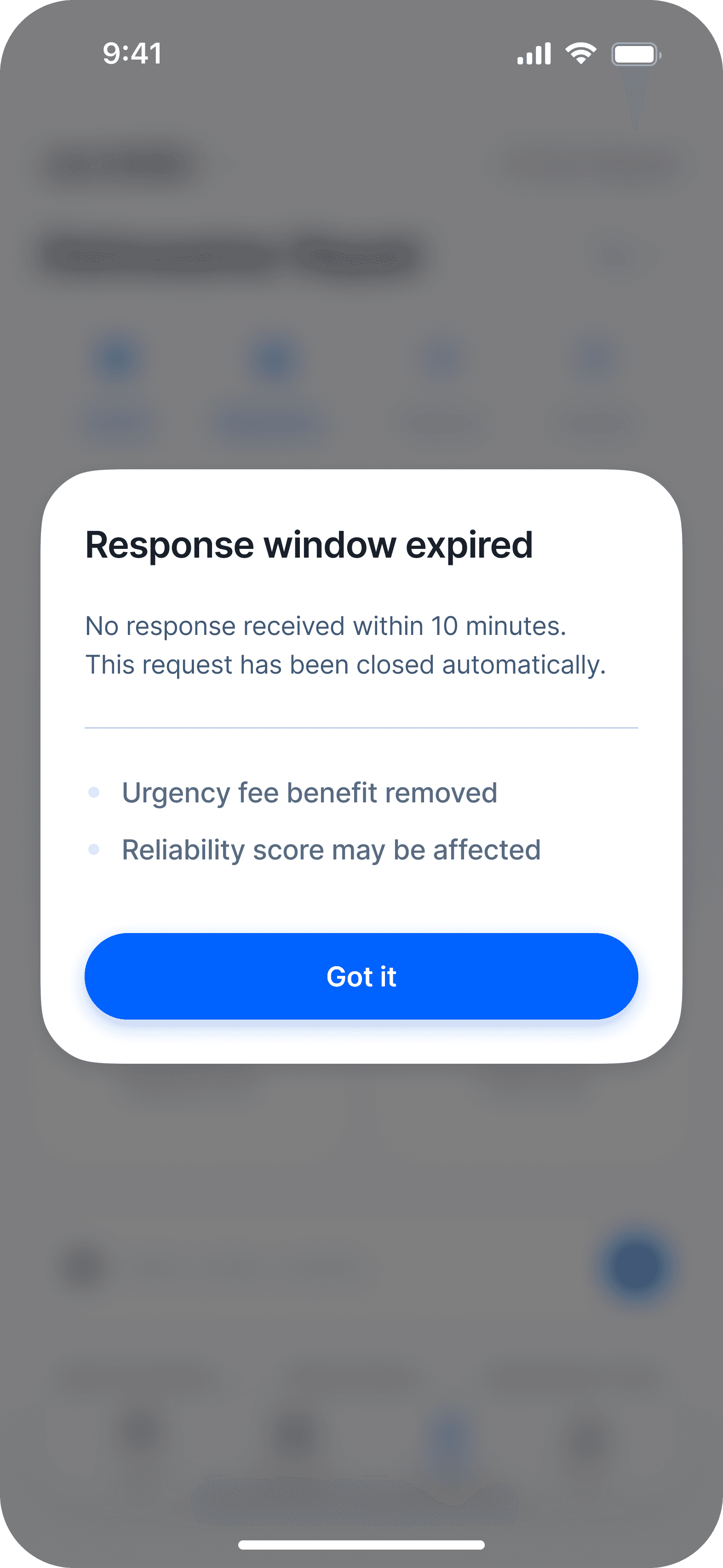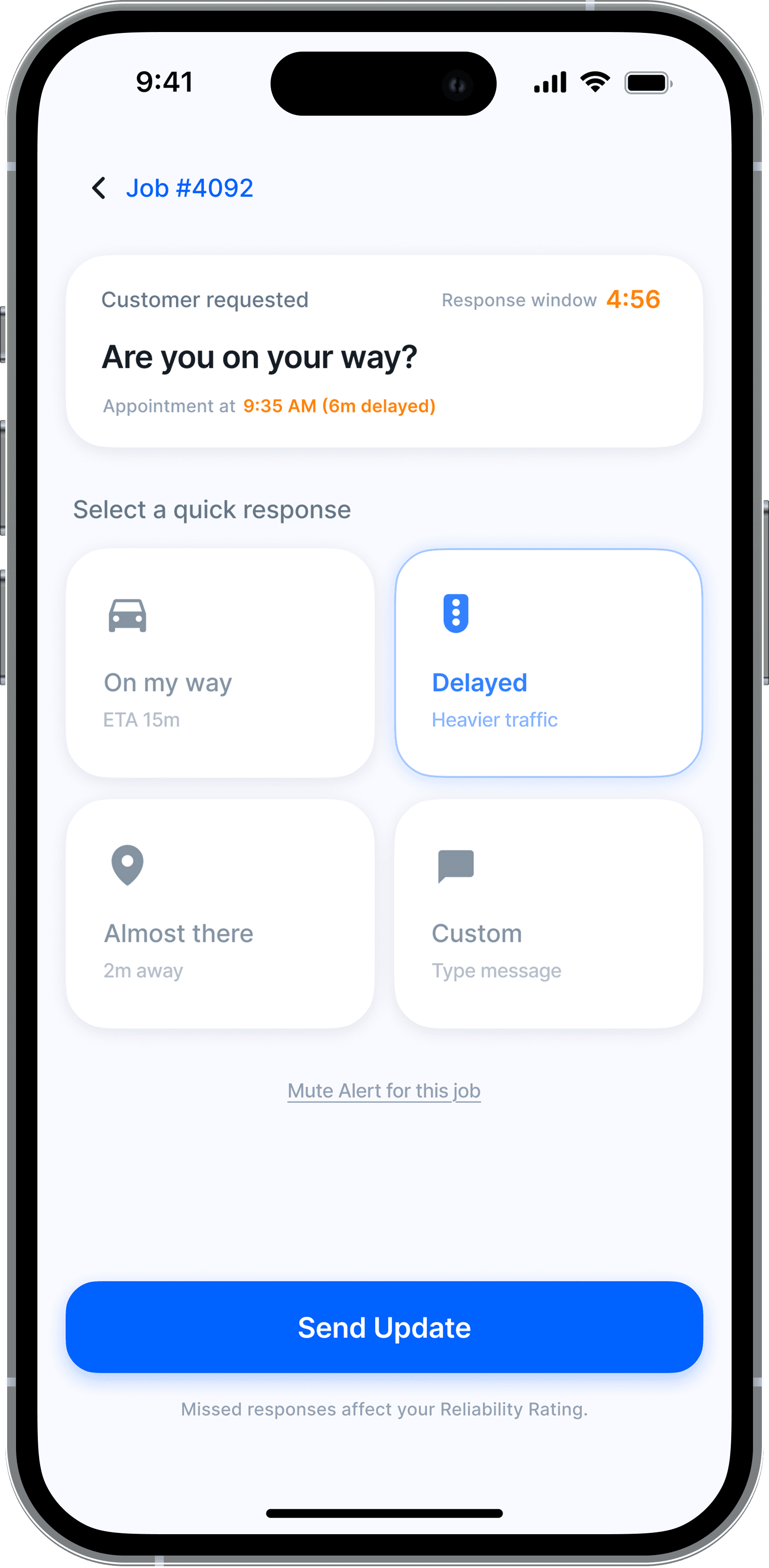 Responding within 10 minutes preserves the urgency fee benefit. Delays automatically forfeit it.
